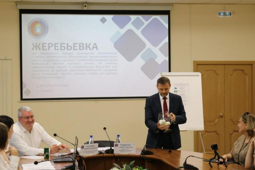 Жеребьевка прошла с участием представителей 6-ти избирательных объединений. По итогам жеребьевки политические партии в избирательном бюллетене по единому избирательному округу на выборах депутатов Тамбовской городской Думы будут расположены в следующей очередности: