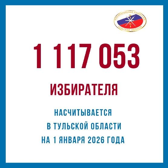 На 1 января 2026 года в Тульской области зарегистрировано 1 117 053 избирателя. В Туле — 421 935 человек.