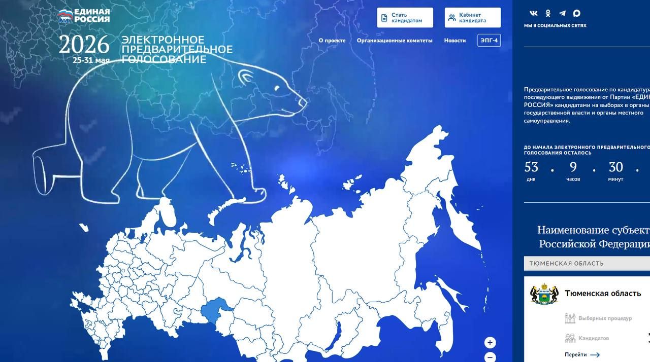 В конце апреля начнётся регистрация избирателей на сайте PG.ER.RU. А с 25 по 31 мая жители Тюменской области смогут отдать свои голоса за тех, кто, по их мнению, достоин представлять партию на выборах в региональный и федеральный парламенты.