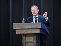 Заместитель Председателя Правительства Алтайского края, министр финансов Алтайского края Данил Ситников озвучил итоги исполнения консолидированного бюджета Алтайского края: «Доходы консолидированного бюджета Алтайского края в 2025 году составили 239 миллиардов рублей, с ростом 113% к уровню 2024 года. Налоговые и неналоговые доходы поступили в размере 169,2 миллиарда рублей, или 113% к уровню 2024 года. По темпу роста налоговых и неналоговых доходов Алтайский край занял 2 место среди субъектов Сибирского федерального округа (средний рост по СФО - 103%) и 28 место в Российской Федерации (средний рост по РФ - 105%). Расходы консолидированного бюджета в 2025 году составили 256,6 миллиарда рублей, с ростом 121% к уровню 2024 года». Также он рассказал об изменении территориальной организации местного самоуправления в Алтайском крае с 2007 года по настоящее время, об административно-территориальном делении субъектов СФО, об участии Алтайского края в проектах, реализуемых на федеральном уровне (национальные проекты, индивидуальная программа социально-экономического развития Алтайского края, инфраструктурные проекты). Подробно остановился на исполнении бюджетов муниципальных образований Алтайского края по доходам, по расходам, на предоставлении финансовой помощи местным бюджетам. В завершение выступления Данил Ситников поставил задачи перед органами местного самоуправления на 2026 год.