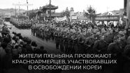 освобождена Корея. Воины Красной армии, сражаясь плечом к плечу с корейскими патриотами против японского милитаризма, разгромили Квантунскую армию и освободили народ Кореи, ускорив завершение Второй мировой войны на Дальнем Востоке.