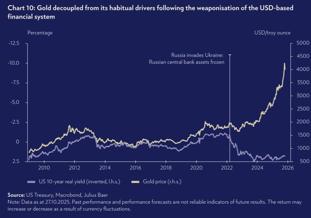 Экономический обозреватель журнала «Монокль», ведущий канала «Графономика», эксперт Центра ПРИСП Евгений Огородников – о последствиях заморозки российских активов для мировой финансовой системы.СВО еще далека до завершения, а главный стратегический удар по мировому устройству Россия нанесла и одержала сокрушительную победу. Сверху — сложный на первый взгляд график от Julius Baer — небольшого швейцарского банка, специализирующегося на частном банкинге и управлении активами («банчка» кого нужно).