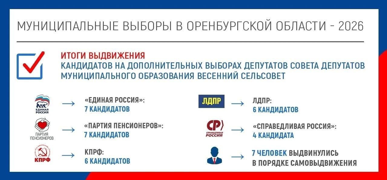 завершилось выдвижение кандидатов на дополнительных выборах депутатов Совета депутатов муниципального образования Весенний сельсовет.