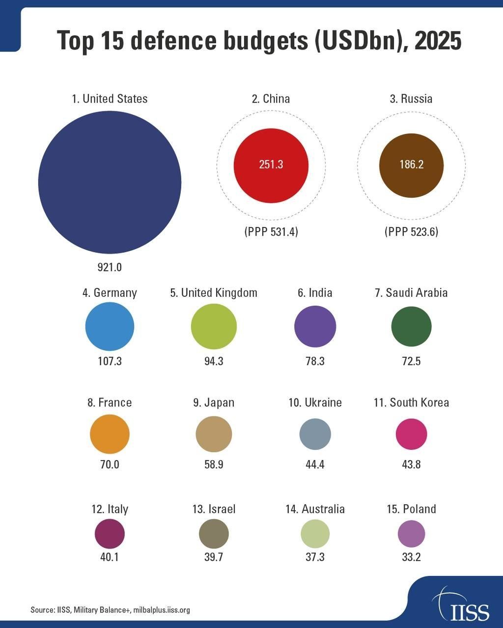 При этом экономики Китая и России (на длительном горизонте) растут быстрее американской, а вместе с ними и возможность безболезненно наращивать военные расходы. А тот же украинский конфликт показал, что траты членов НАТО на оборону и «вундерваффе» не столь эффективны, как об этом говорят внутренние красочные презентации. Одна Россия противостоит всему блоку Европы при поддержке США. А что делает Иран с оборонным бюджетом в 9 млрд долларов — вообще уму непостижимо.